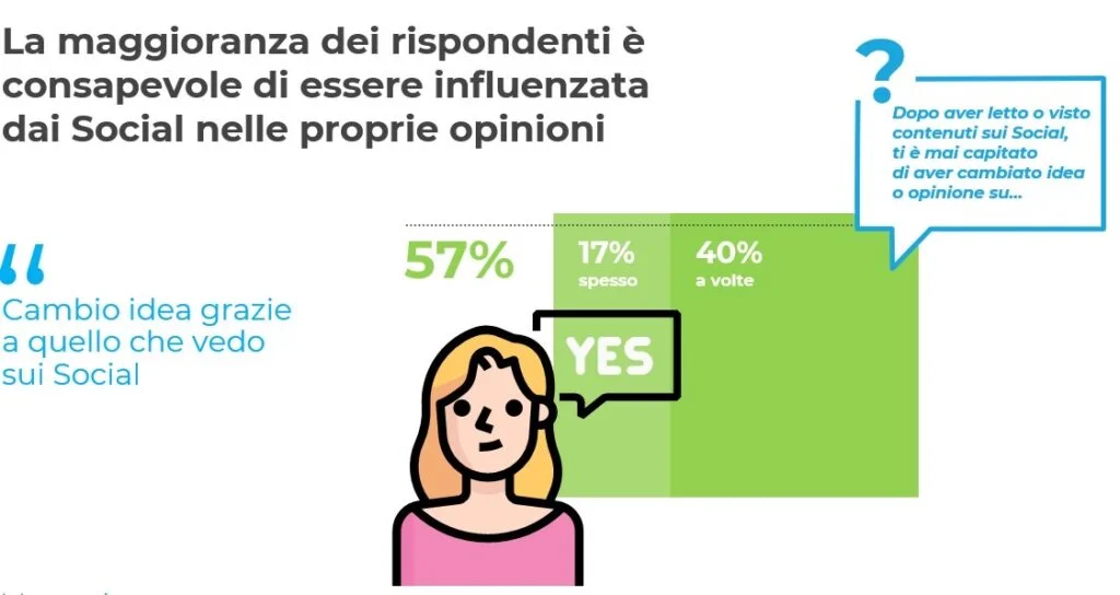 Queste persone sono seguite dal resto del pubblico dei Social Network e possono veramente cambiare le carte in tavola. Il campione intervistato da BlogMeter ha infatti dimostrato che il 57% degli italiani cambia idea dopo aver visto qualcosa sul web. Ciò dimostra che, pubblicizzarsi nel giusto modo sul web, può essere veramente di aiuto per la vostra azienda!
